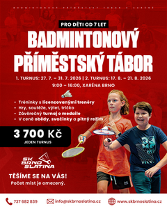 | 19 | 03 | 2026 | Hledáte pro své děti smysluplný a aktivní program na léto? Přihlaste je na náš oblíbený badmintonový příměstský tábor, který se koná přímo ve špičkovém sportovním zázemí Xarena Slatina! |